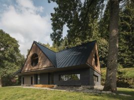 • Na místě původní chalupy vznikla nová stavba inspirovaná krkonošskou architekturou