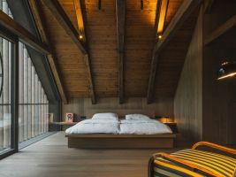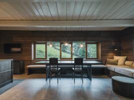 Ta zahrnuje prostory pro sportovní vybavení, technické zázemí i provozní funkce, které jsou pro horské prostředí zásadní. Podkroví pak nabízí otevřený prostor s ložnicemi orientovanými do štítů a výhledy na krajinu.