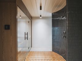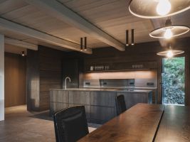 Původní přístavby byly transformovány na nové funkce odpovídající současným potřebám. Někdejší hygienické zázemí se proměnilo v saunu se zázemím, zatímco mezi svah a hlavní objem byla vložena technická a skladová část.