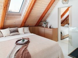 „Při návrhu tohoto interiéru pro mě bylo zásadní vytvořit prostor, který není jen vizuálně atraktivní, ale především pohodlný a smysluplný. Chtěla jsem propojit moderní design s přírodními materiály a vtisknout interiéru jedinečnou atmosféru inspirovanou siluetou Ještědu. Každý detail má své místo a svůj význam – od centrální šatní kostky až po promyšlené zóny pro práci i odpočinek“, říká designérka Mgr. Taťána Kandratovičová