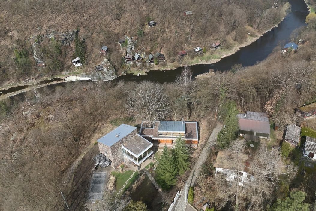 Původní dům stojí na hraně skalnatého svahu nad Sázavou a v roce 2010 prošel kompletní rekonstrukcí s visutou přístavbou směrem do zahrady. Časem se však ukázalo, že dům už nevyhovuje potřebám majitelů. Nový návrh proto hledal způsob, jak prostor rozšířit, aniž by narušil přirozené proporce domu a výhledy z pozemku.