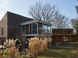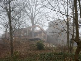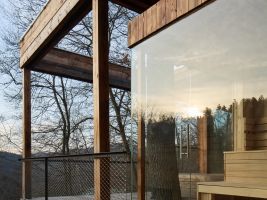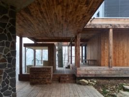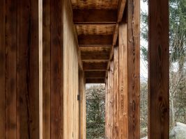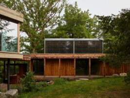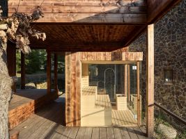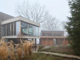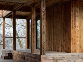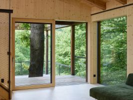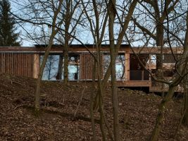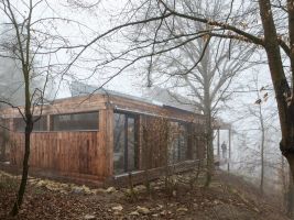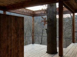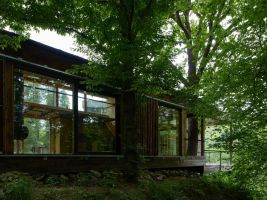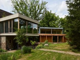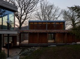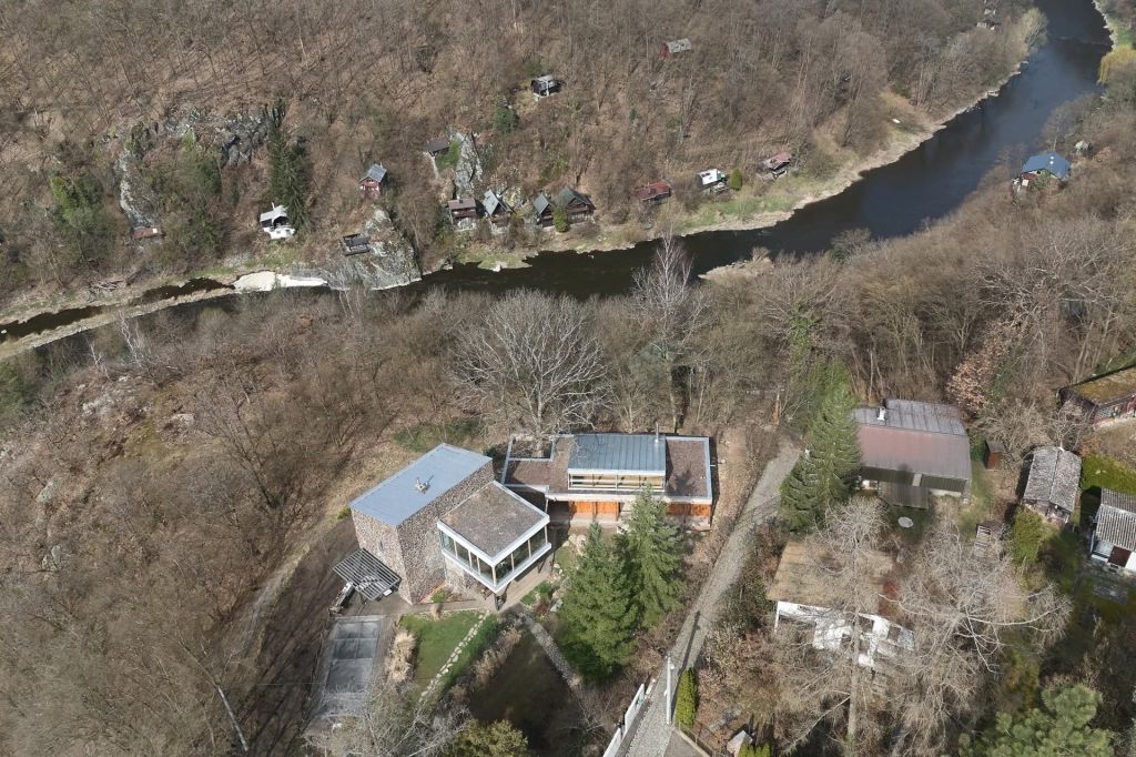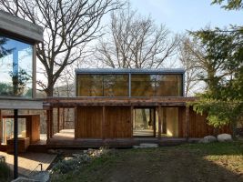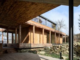 Na okraji lesa nad řekou Sázavou vznikla přístavba, která citlivě rozšiřuje stávající rodinný dům z počátku 20. století. Architekti při návrhu respektovali charakter původní stavby, členitý terén i výhledy do krajiny. Nový objekt, propojený s domem krytou terasou, přináší světlý ateliérový prostor i zázemí pro klidnou tvorbu.