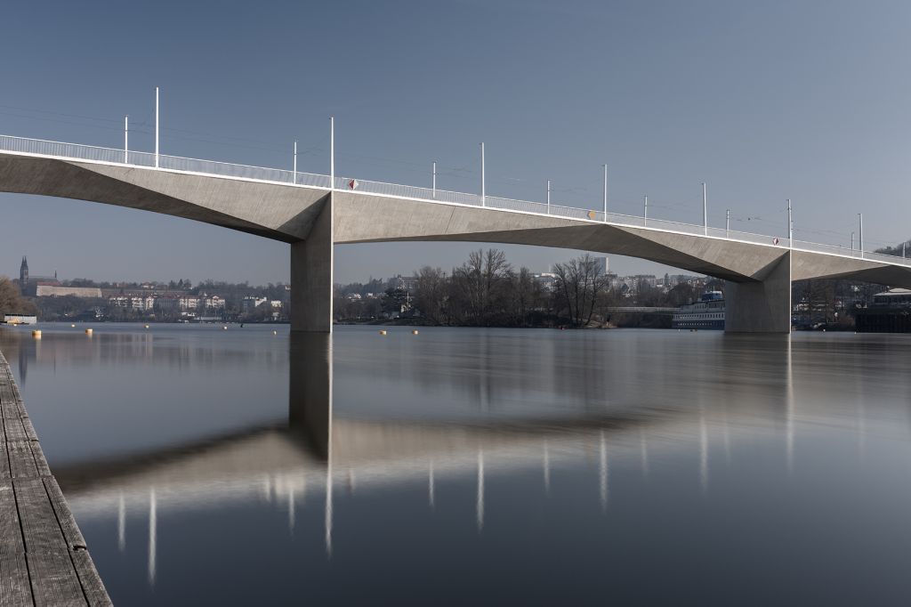 Architektonický koncept vychází z respektu k historickému panoramatu Prahy. Most proto nemá žádné dominantní prvky nad mostovkou a působí jako horizontální linie nad hladinou Vltavy. Tvarosloví konstrukce se organicky proměňuje a odkazuje na principy českého kubismu, který je v Praze historicky zakořeněný .