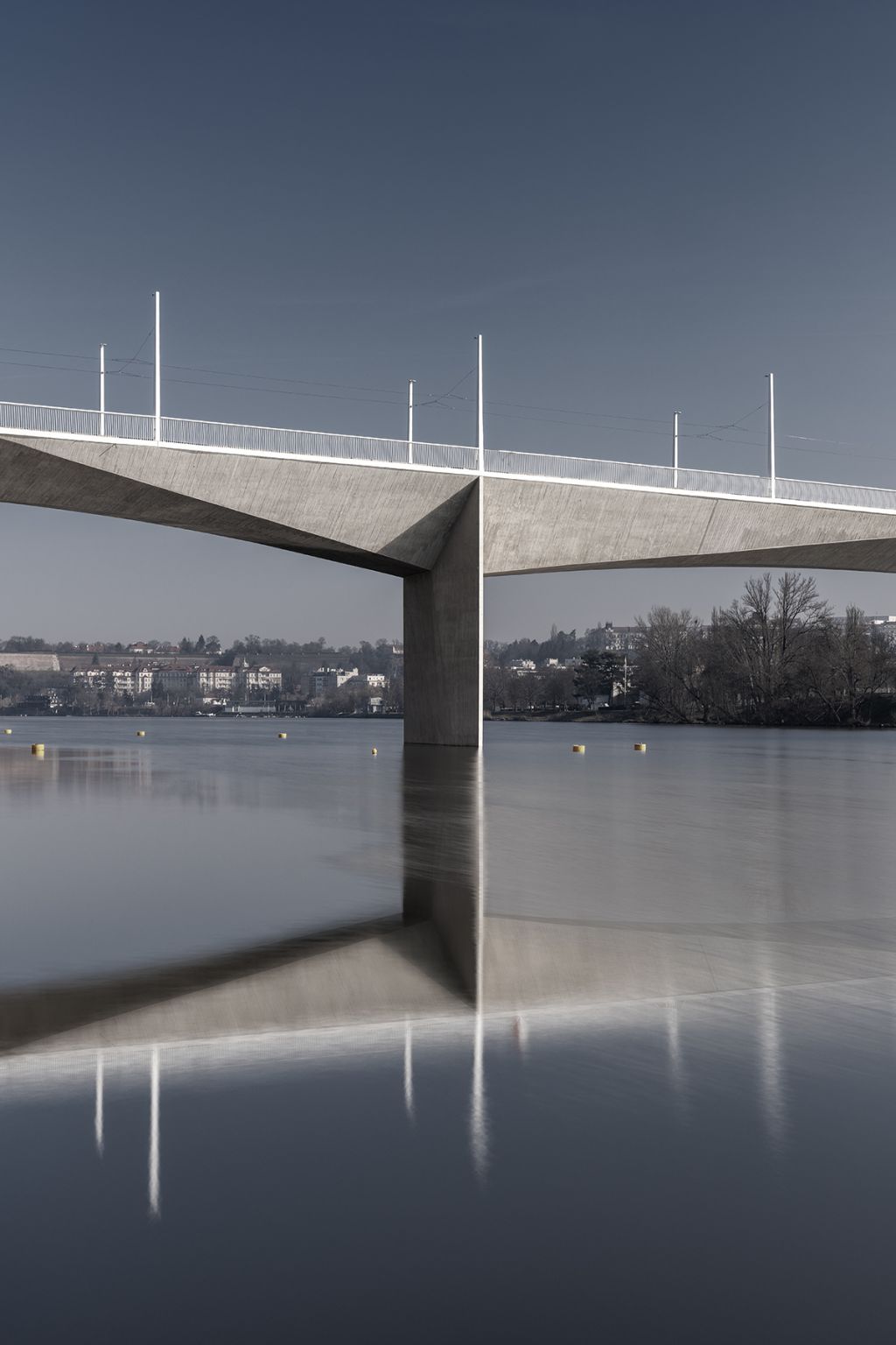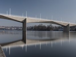„Bylo pro nás zásadní, aby most ladil s horizontálou vyšehradských hradeb a Podolské vodárny. Proto jsme vyloučili jakékoliv dominantní prvky nad mostovkou, jako jsou pylony nebo oblouky, které známe například z Trojského mostu,“ vysvětluje hlavní architekt Radek Šíma z Ateliéru 6