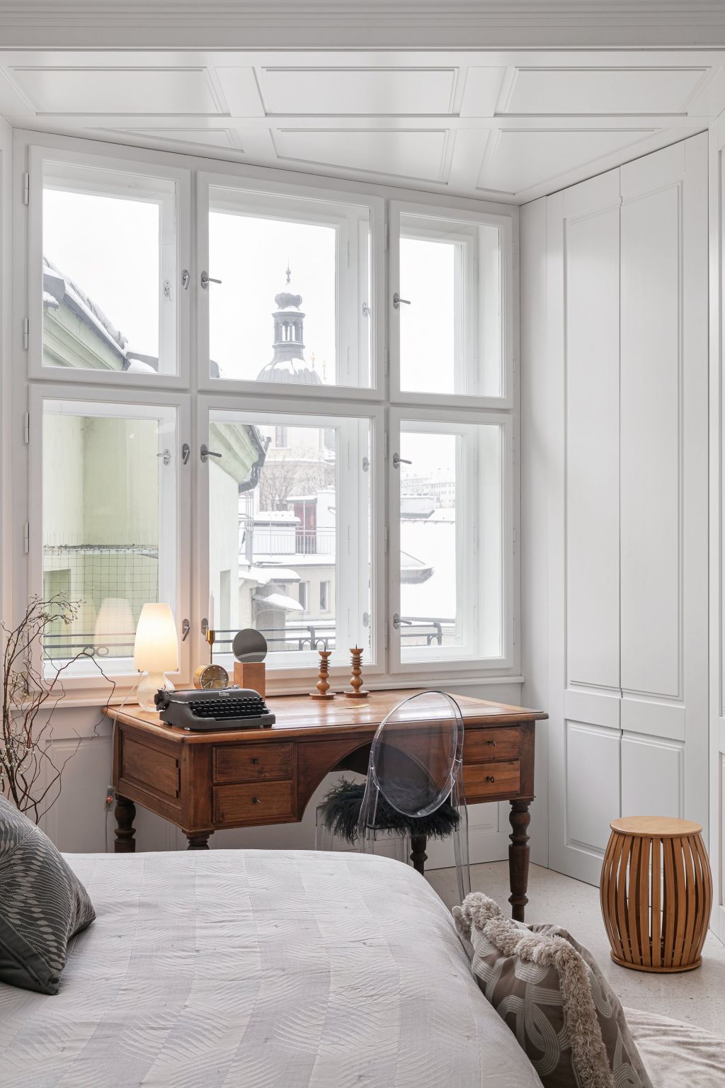 - Interiér bytu na Starém Městě se musel barevně přizpůsobit okenním otvorům