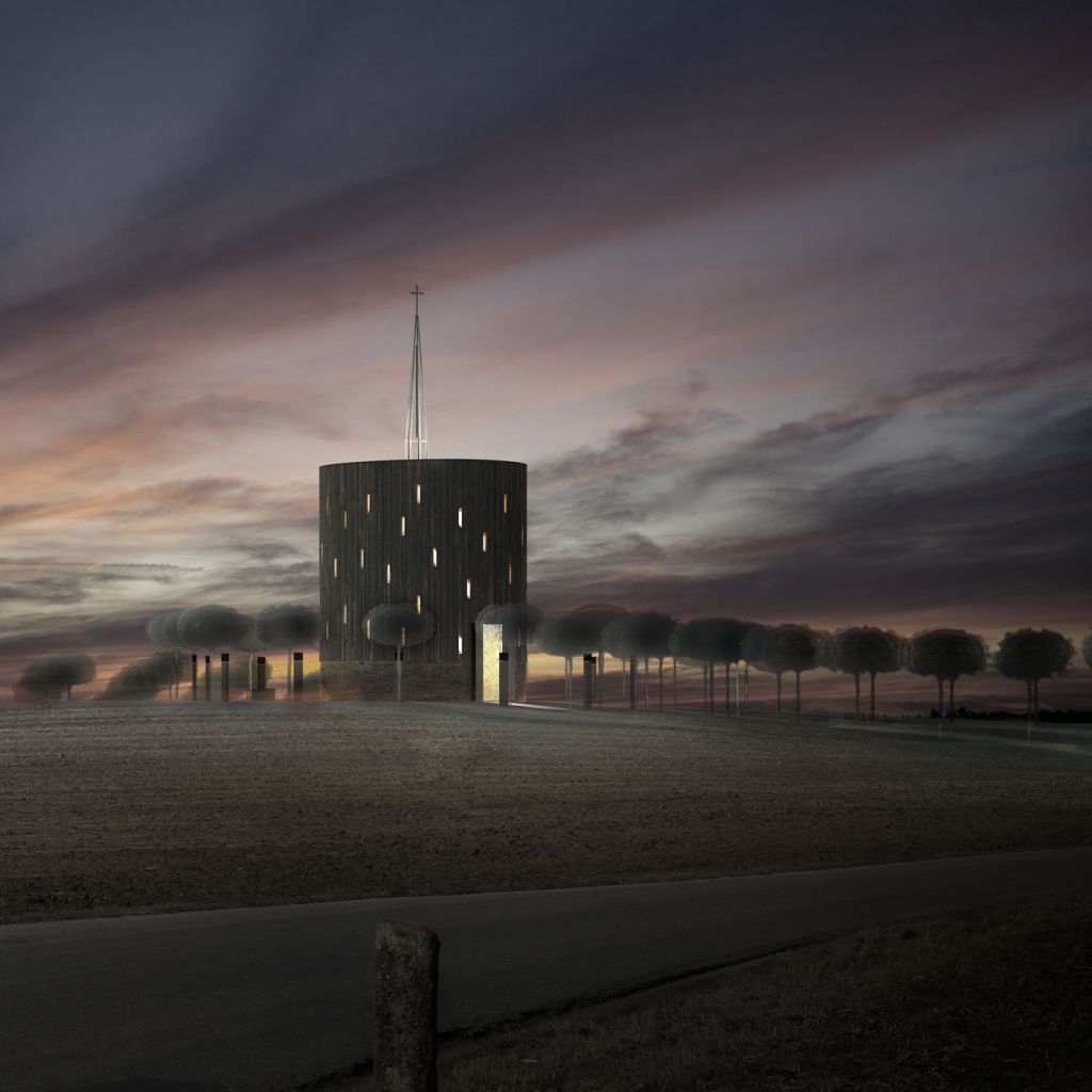 Autorem projektu je architekt Jan Říčný. Terénní úpravy a základy kaple se začaly budovat v roce 2014. O tři roky později získala budoucí kaple i ocenění Dřevostavba roku.