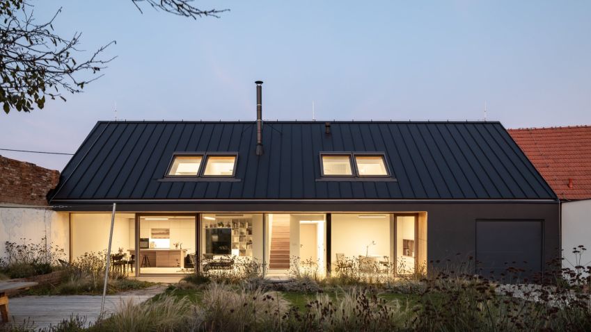Dům dvou tváří, i tak by se dal nazvat rodinný dům v Moravském Krumlově. Při pohledu ze zahrady působí přívětivým dojmem s vesnickým charakterem. Z ulice ovšem provokuje moderní černou fasádou, právě provokace byla i cílem architektů z ateliéru CL3.
