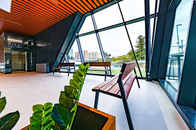 • Cestujícím nabízí výtah, eskalátory, toalety, pokladnu i prostorné zázemí