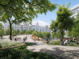 • Důležitou roli hraje zeleň navazující na stromořadí Pařížské ulice a zlepšující mikroklima místa