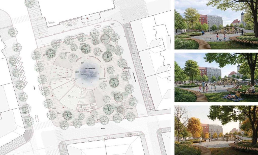Podoba nové piazzetty vzešla z mezinárodní architektonické soutěže, do které se zapojilo 197 architektonických ateliérů ze 42 zemí. Takto vysoká účast potvrzuje význam místa i zájem odborné veřejnosti o práci s veřejným prostorem v historickém centru Prahy. Vítězný návrh zpracovalo dánské studio Adept, které se dlouhodobě věnuje tématům městské krajiny, pohybu a pobytové kvality.