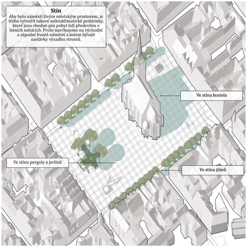 Současná etapa vychází z těchto úvah a snaží se řešit konkrétní provozní problémy bez radikální změny celkové kompozice náměstí. Důraz je kladen na kvalitu detailu, materiálové řešení a lepší čitelnost prostoru.
