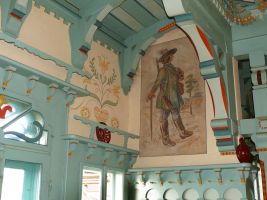 Dřevěná chata Libušín byla otevřena 6. srpna 1899. Její interiér byl vyzdoben freskami a grafity s motivy valašských a slovenských pověstí podle návrhu výtvarníka Mikoláše Alše. Portréty jsou dílem akademického malíře Karla Štaplera. Stavby na Pustevnách vznikaly podle principů skládání a kombinování různých prvků a motivů lidového stavitelství. Byly převzaty jak z lokalit Valašska, tak z lokalit Slovenska. Stavby na Pustevnách mu vynesly označení „Básník dřeva“ a mezinárodní proslulost.