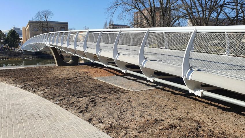 Lávka pro pěší a cyklisty propojila centrum města s lokalitou Aldis. Stavba je 103 metrů dlouhá a 5,7 metru široká. Město si od lávky slibuje oživení přilehlé lokality a Smetanova nábřeží. Stavba také přinese bezpečné spojení mezi centrem města a Šimkovými sady.