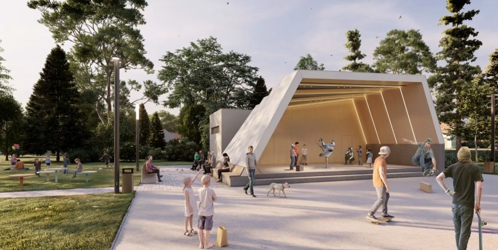 Multifunkční kryté podium je navrženo jako unikátní a atraktivní místo, které bude sloužit jako centrální prostor pro různé akce a kulturní události. Architektonický návrh je z pera brněnského ateliéru mämā design.