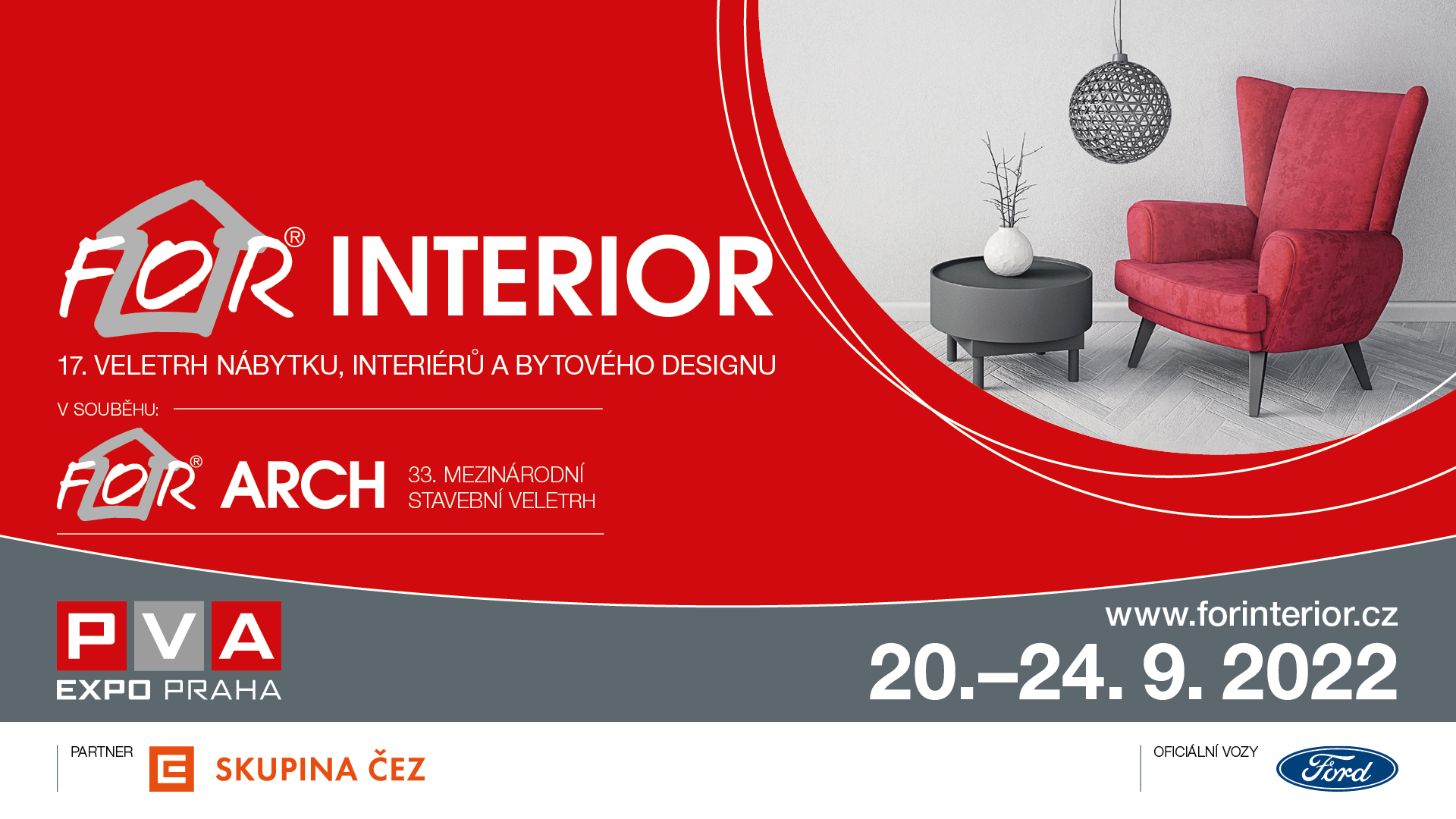 Barvy, materiály, bytový design i mnoho modelů nábytku, to vše a mnohem více bude k vidění na podzimním veletrhu nábytku, interiérů a bytového designu FOR INTERIOR. Přehlídka novinek a trendů pro váš domov se bude konat ve dnech 20. až 24. září v PVA EXPO PRAHA.