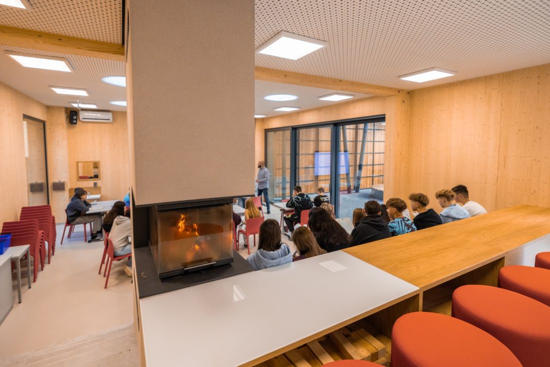 Z konstrukčního hlediska nabízí dřevo rychlou montáž a snadnou úpravu detailů, což se odrazilo i na venkovních učebnách. Stavba kombinovala dřevo, ocel a beton, doplněná o zelené střechy a sportovní povrchy. Právě variabilita materiálu umožnila vznik prostoru, který je současný, ekologičtější a esteticky zapadá do školního areálu.