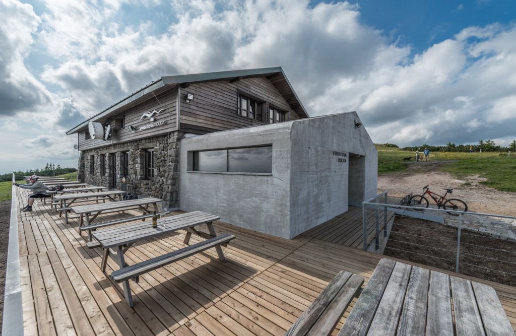 „Byla to naše první zakázka realizovaná v Krkonoších, od té doby se nám podařilo v horách pracovat i na dalších projektech. Jedná se o rekonstruovaný objekt Vrbatovy boudy a realizaci železobetonové přístavby ve výšce 1400 m. n. m.,“ říká Hradečný. Stavební úpravy zahrnovaly kromě nutných sanací také rozšíření provozu restaurace o prostor bývalé terasy. Při rekonstrukci byly použity především tradiční řemeslné postupy. Vodostavební beton přístavby s otiskem bednění dodává interiéru i exteriéru syrový vzhled.