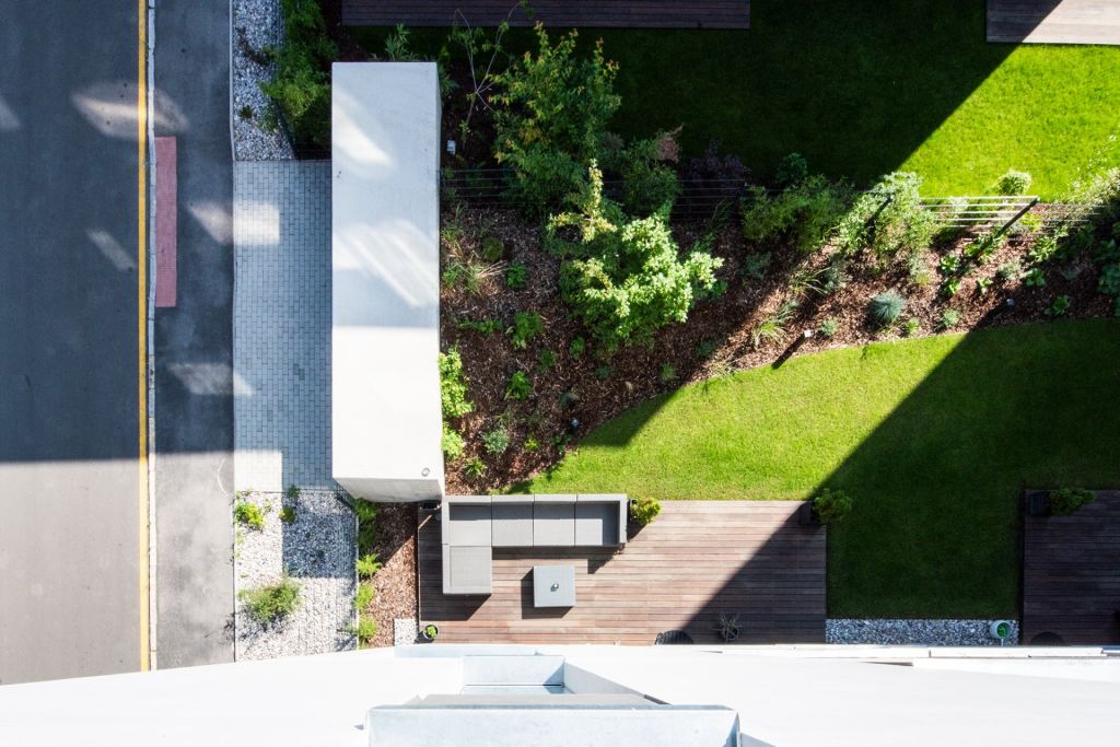 „Na celkem malém pozemku s orientací na jih jsme vytvořili bariéru proti slunci, která brání teplu i paprskům procházet do interiéru. Tam, kde vznikl volný prostor, byl vybudován strop, který taktéž vytváří sluneční clonu. Dům je jednoduchý s bílou omítkou s detaily černé a šedivé,“ říká architekt Jan Adámek.