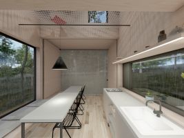 „Menší bytový dům vznikne v pražských Modřanech. Projekt je inspirovaný vodou, fasáda má napodobovat vodní hladinu. Dům hodně pracuje ze zelení, jsou zde vegetační sítě pro popínavé rostliny i zelené střechy a terasy,“ říká Michal Procházka.