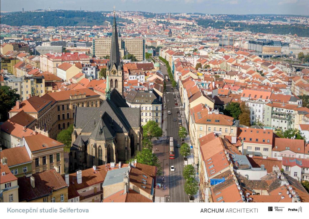 Koncepční studie revitalizace Seifertovy ulice navrhuje její budoucí podobu s důrazem na architektonické, krajinářské a dopravní řešení. Jedná se o pilotní projekt aplikace prvků modrozelené infrastruktury včetně systému opatření před extrémními srážkami v souladu se Strategií adaptace hl. m. Prahy na změnu klimatu. Impulsem k proměně tohoto území je plánovaná rekonstrukce tramvajové trati s přesunem zastávek Lipanská a Viktoria Žižkov. „Cílem studie bylo do Seifertovy ulice implementovat opatření, která by křižovatku u Bulhara ochránila před následky přívalových dešťů. Zároveň bylo důležité vytvořit kvalitní veřejný prostor v poměrně složitém prostředí dopravně vytížené ulice. Rekonstrukce tramvajové trati a přesun zastávek mění pohyb pěších do lepších pozic a zároveň jsme díky změněné poloze tramvajového tělesa získali prostor pro širší chodníky a vznik nové zeleně. Řešené byly i prostory náměstí Winstona Churchilla a Sladkovského náměstí,“ říká architekt Michal Petr.
